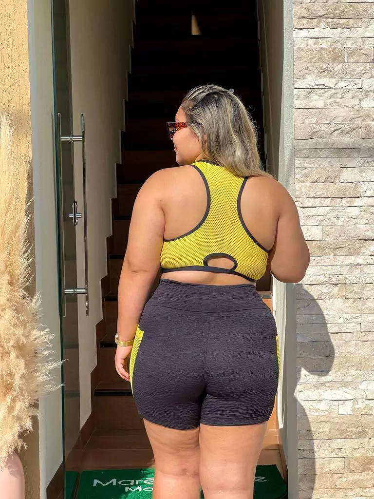 CONJUNTO FITNESS SHORT DUO AMARELO E PRETO